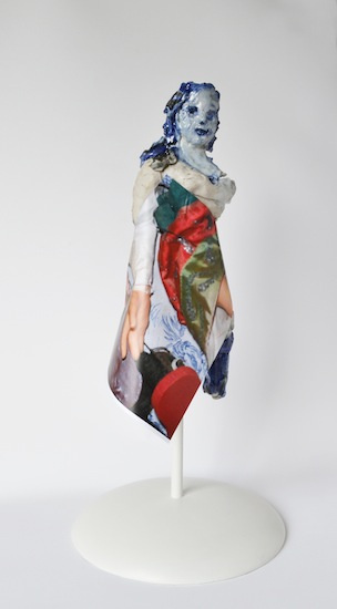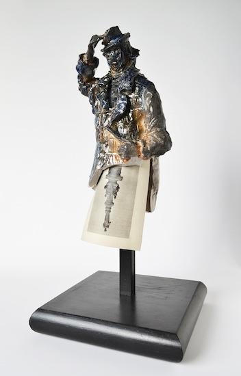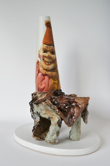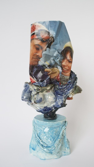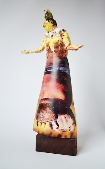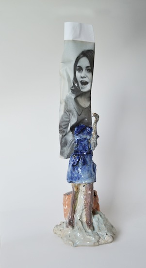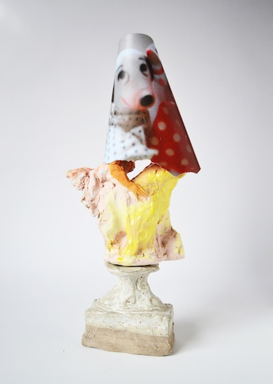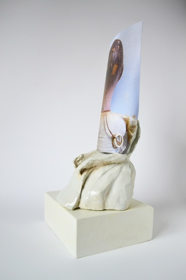 Throughout my artistic career I have honed my technical skills and sensitivity to materials, and I am currently exploring the way various materials affect the conceptual intent and impact of each piece. These pieces combine paper with paper and paper with sculpted ceramic components. The source materials for elements include old books, documentary photographs of the circus, party ephemera, figurative sculptures from antiquity, and mass-produced figurines of the industrial era. The materials are altered, manipulated, and combined in a process that becomes an obvious and integral part of the completed piece. The paper introduces an element of fragility, while also referring to art historical uses of “found” objects and materials by artists associated with Dada and Surrealism. I was equally interested in using paper sculpturally, in a naïve and childlike way that complements and contrasts with the ceramic elements. At the heart of these works is the potential of each material to evoke a different emotional response, on a full spectrum of tensions and resonances.
