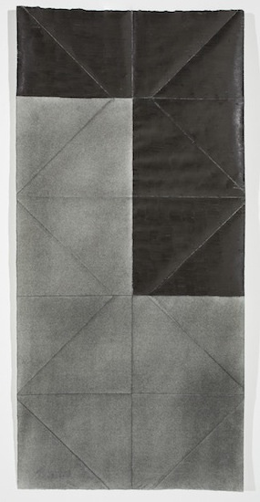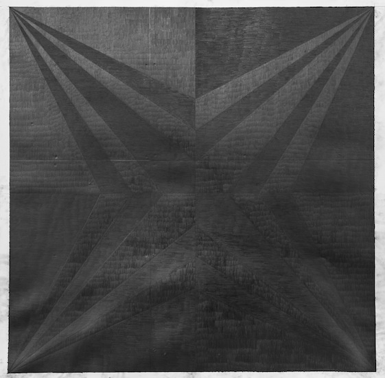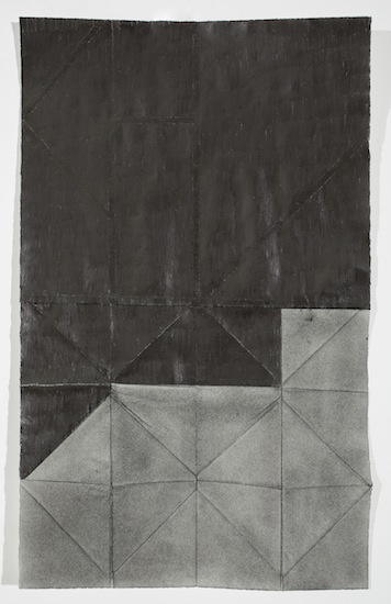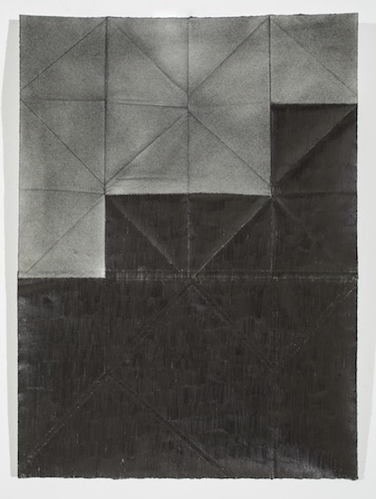 Conceptually, the work is in response to a culture based on class. Gemstones, in particular diamond cuts, are used not only as a launching off point for abstraction but also to create a tension between the high and low. The valueless (ie. a rock) becomes elevated to an object of status through countless hours of carving, rubbing, scrapping. The obsession associated with this type of labor is manifested in the large drawing. Similar to the act of diamond cutting, the build up of this labor transforms the simple materials of paper and graphite into an object of worth."