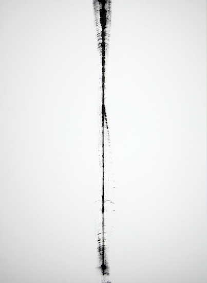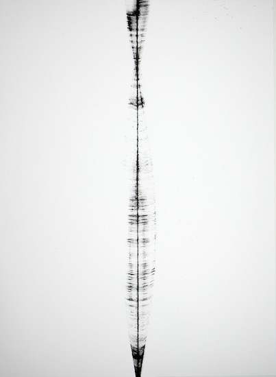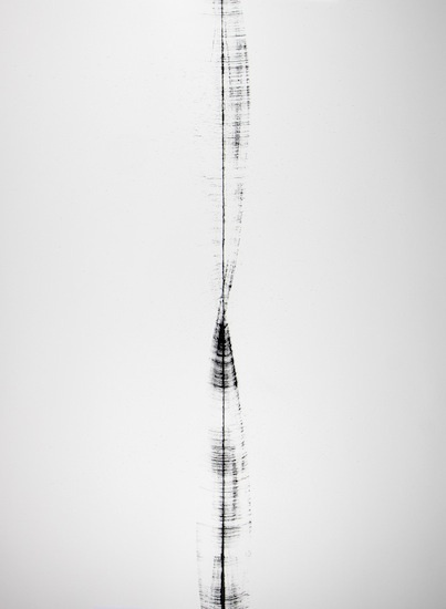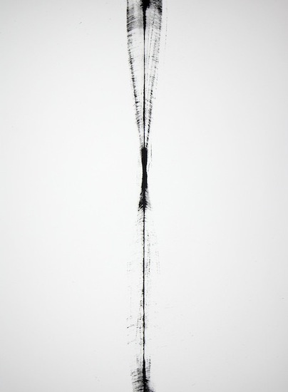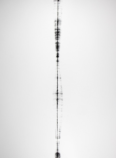 In these works, the gallery audience is invited to experience both the durational immediacy of this phenomenon and its inscription in time. The installed string installation subtly trembles as layers of multi-channel audio engage the process over the duration of the exhibition. Meanwhile, the ink drawings are remnants derived from the same process in-studio. Ink soaked strings were precisely positioned above paper sheets and sent into vibration, resulting in a series of illustrated sonic moments - a sound reproduction as an act of mark-making.