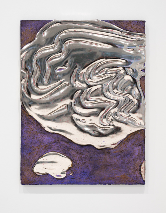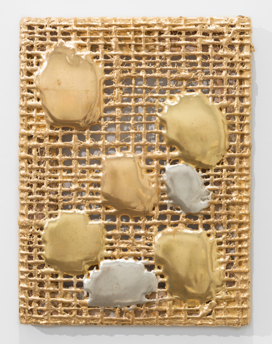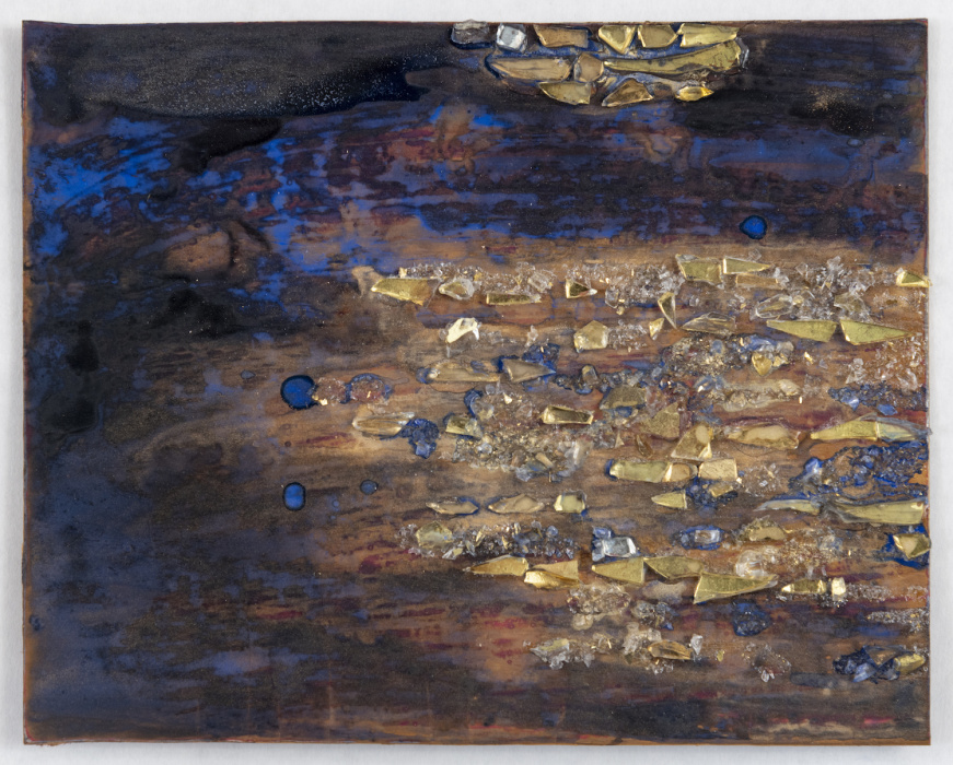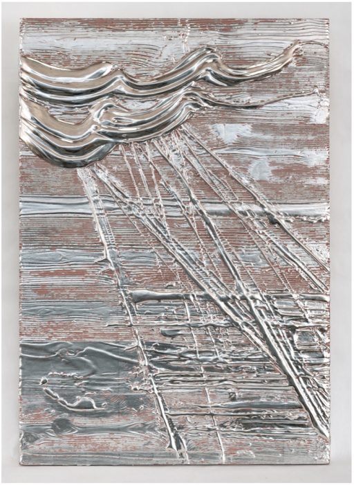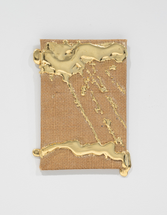 palladium leaf, iron fillings, jute, and pigment on wood panel