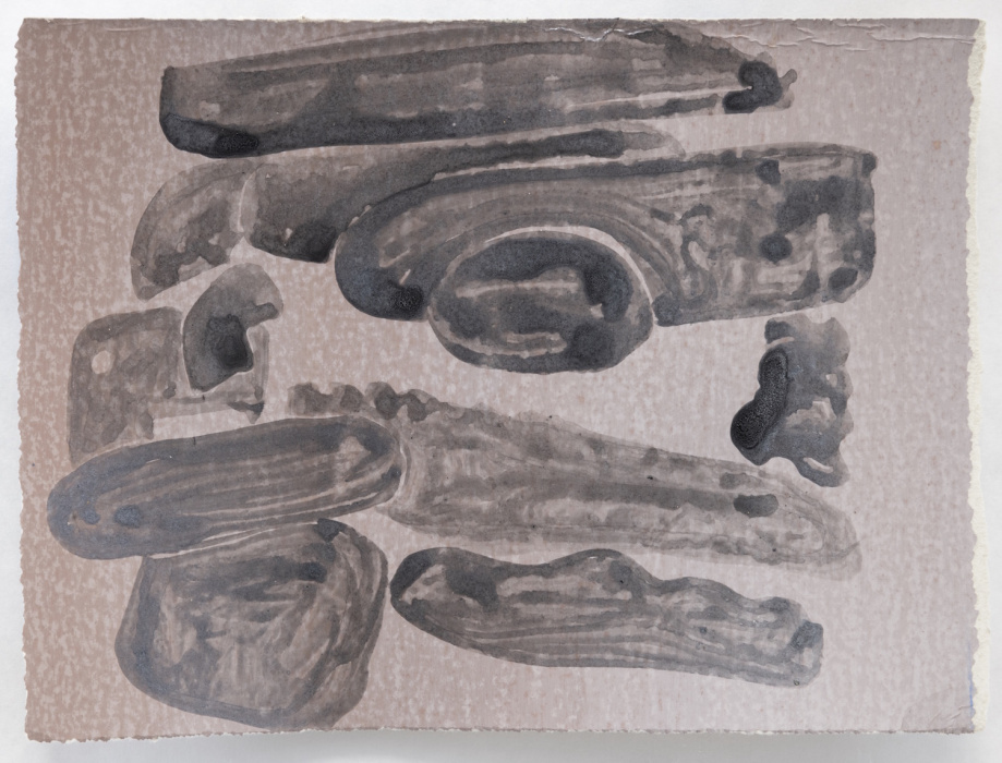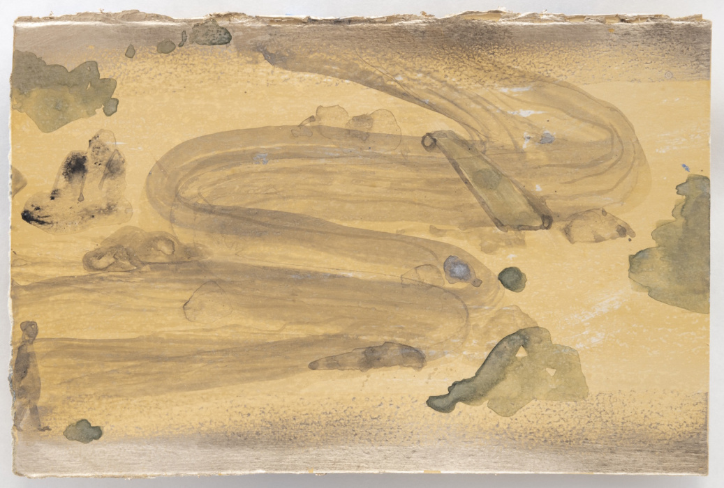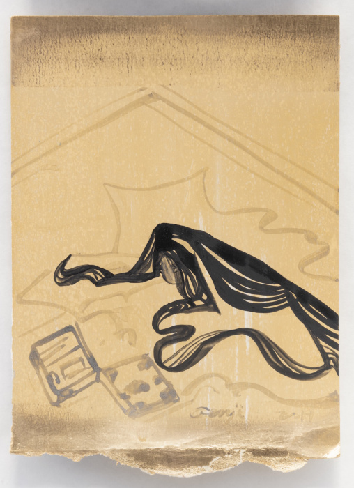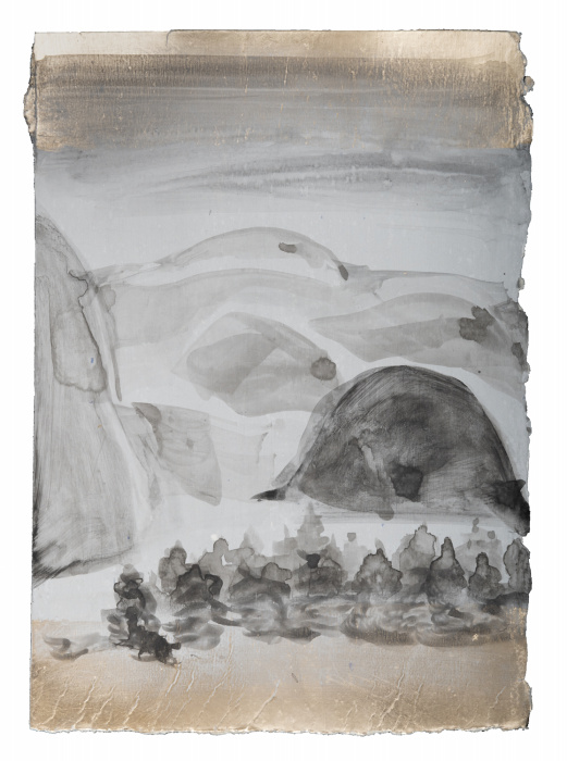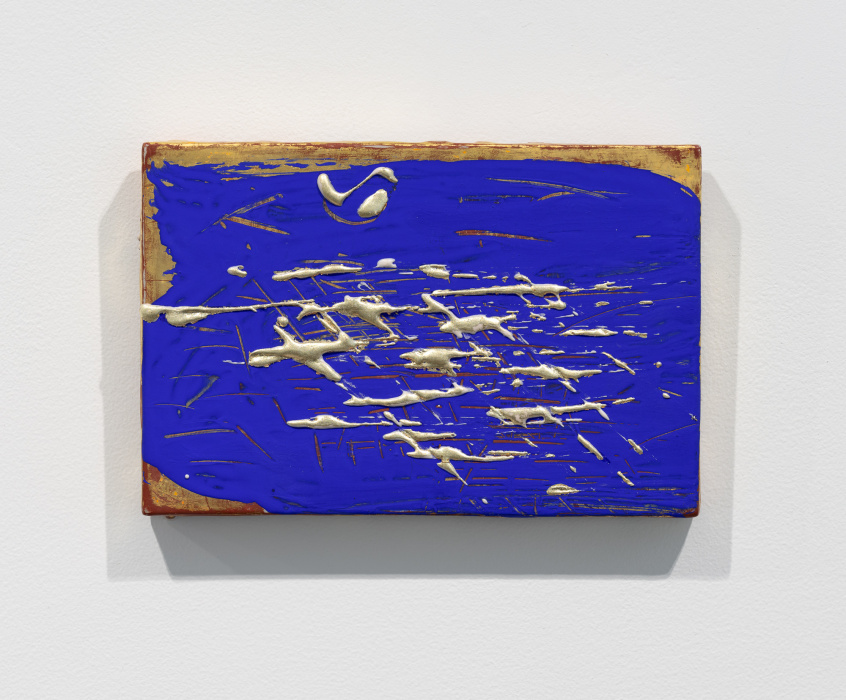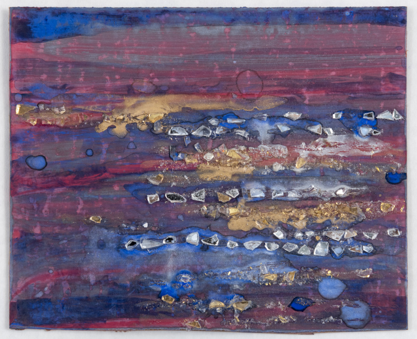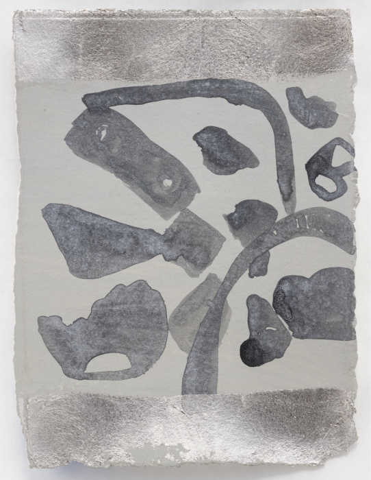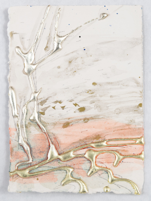 palladium leaf, watercolor, and gilder's clay on paper