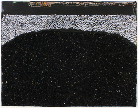 “This Quiet Dust, Ladies and Gentlemen” is an installation of the newest works by Arnold J. Kemp. This will be Kemp’s first solo show in Portland since his inclusion in PICA’s TBA festival in 2007. It will feature several paintings made with black glitter, black paint and doll’s eyes on modestly sized linen supports as well as several photographic prints keyed to the tones of graphic drawings. The elusive quality of Kemp’s works are balanced against their insistence on being at once unforgettably black, dusty and glittering. The work carries something of the darker sides of nature while also harkening to Kemp’s personal biography as a black man. The title of the exhibition (an adaptation from Emily Dickinson) embodies Kemp’s commitment to present at once poetic and at times darkly humorous work that references quietude, passings away and new beginnings. The exhibition will also feature photographs of trees in Harlem, which are a result of a commission by the Studio Museum Harlem.